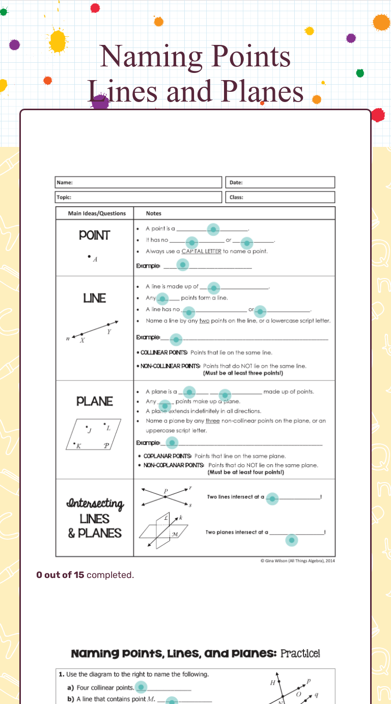 Geoday1 Docx Worksheet 1 1 Points Lines And Planes Day 1 I 1 Name Short Answer Name One Real World Object That Suggests A Points B Lines C Planes D E Course Hero from www.coursehero.com Also, any two of the three points on the line can be used to name it. In such an instance, the image is reduced in size and located between c and f. It acts as a map and yields precise directions from one point to another. Jody has corners for a picture frame. A plane containing point d the plane can be named as plane n or can be named using three noncollinear. 1) 3 x − 2y = −16 2) 13 x − 11 y = −12 3) 9x − 7y = −7 4) x − 3y = 6 5) 6x + 5y = −15 6) 4x − y = 1 7) 11 x − 4y = 32 8) 11 x − 8y = −48 write the standard form of the equation of the. Each series of points connects to form a line. Re ection across line n c.